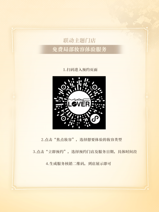 玩家扫码前往【M·A·C LOVER】小程序,按照指引即可预约,享受免费局部妆容体验服务。