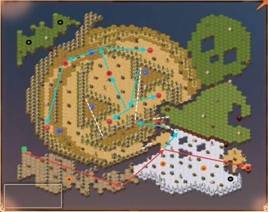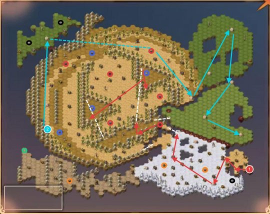 (4)1队、2队在去占领远征营地时,尽可能留好返回的路线,减少用于走已探索过地块的粮草;