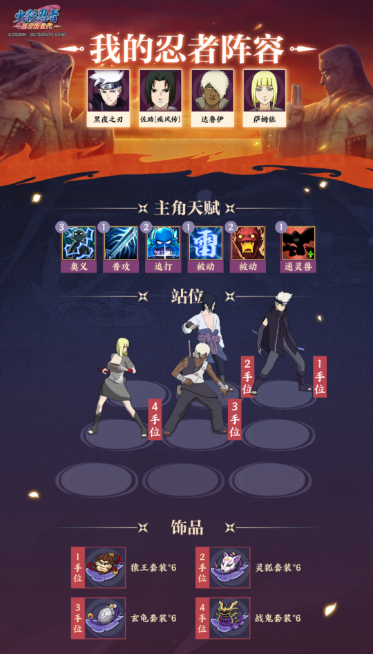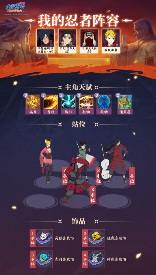 c.以上仅供参考,具体请以自己所拥有的忍者和饰品进行搭配。