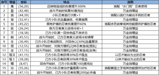 b.具体获取到的增益取决于小队的探索路线和忍者学员所使用的阵容;