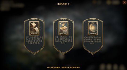 战略卡是指挥官手中影响战局的王牌。每期将从斗转星移、缄默不语、加倍积分、积分加成、随机乐透五种卡牌中随机提供三种。这些卡牌效果强大,例如调换玩家成绩线路、使对手某路最高分失效、使我方某路最高分翻倍、提升某路总积分或随机倍增部分玩家积分等。指挥官需在战斗阶段至结算前择机使用,其效果将按照使用先后顺序在结算时生效,直接改变双方战线的物资数量对比,但不会影响旅者个人的实际分数与排名。
