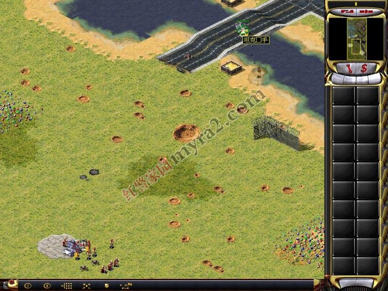 过桥后, 先消灭碉堡和盖特坦克。消灭狙击手得运兵船和6动员兵, 摧毁尤里要塞后得坦克援军。 洞穴口的靶子打出升级箱子给所有坦克和动员兵用上。三辆货车打出装甲/速度/火力升级箱,给所有坦克用上。占领科技修理厂。