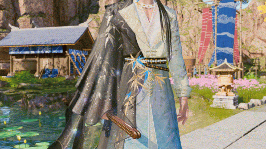 金蓝交织,如日光下竹叶凝着朝露,又似染上星河碎光。腰间配饰层次丰富,与竹叶装饰相衬,既显古韵,又添灵动巧思。