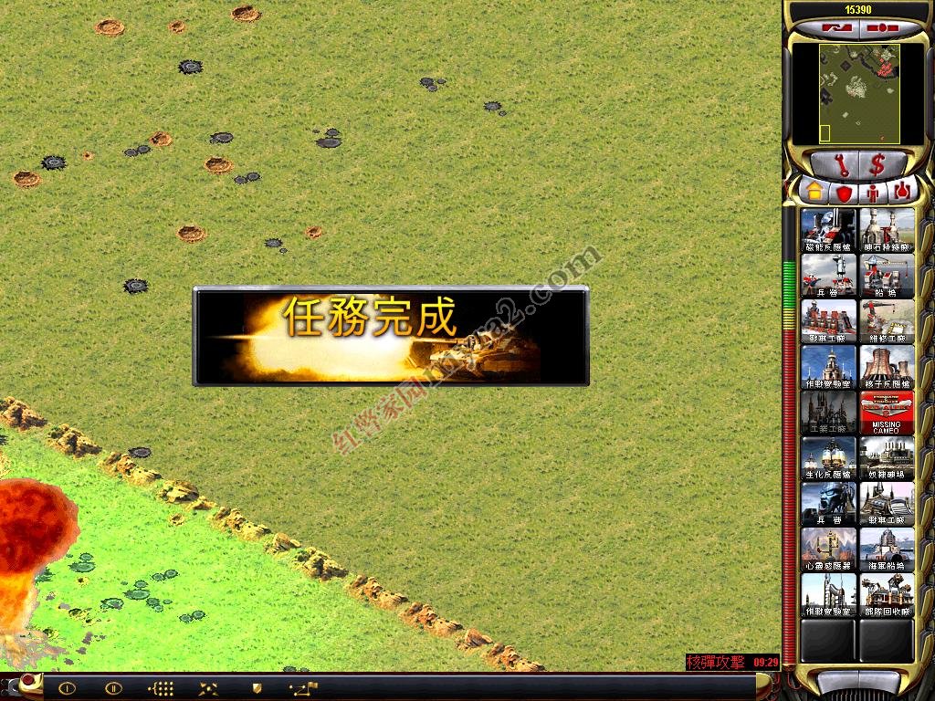 地图上清理完剩余的猴子和敌兵,地图左下一颗核弹消灭地图外的敌兵,任务完成。
