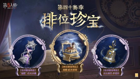 第四十赛季排位珍宝也为玩家们准备了丰厚的奖励,内含【稀世随身物品】疯眼-机关密匣、【奇珍随身物品】杂技演员-手摇铃和【奇珍随身物品】喧嚣”-月光沙漏。