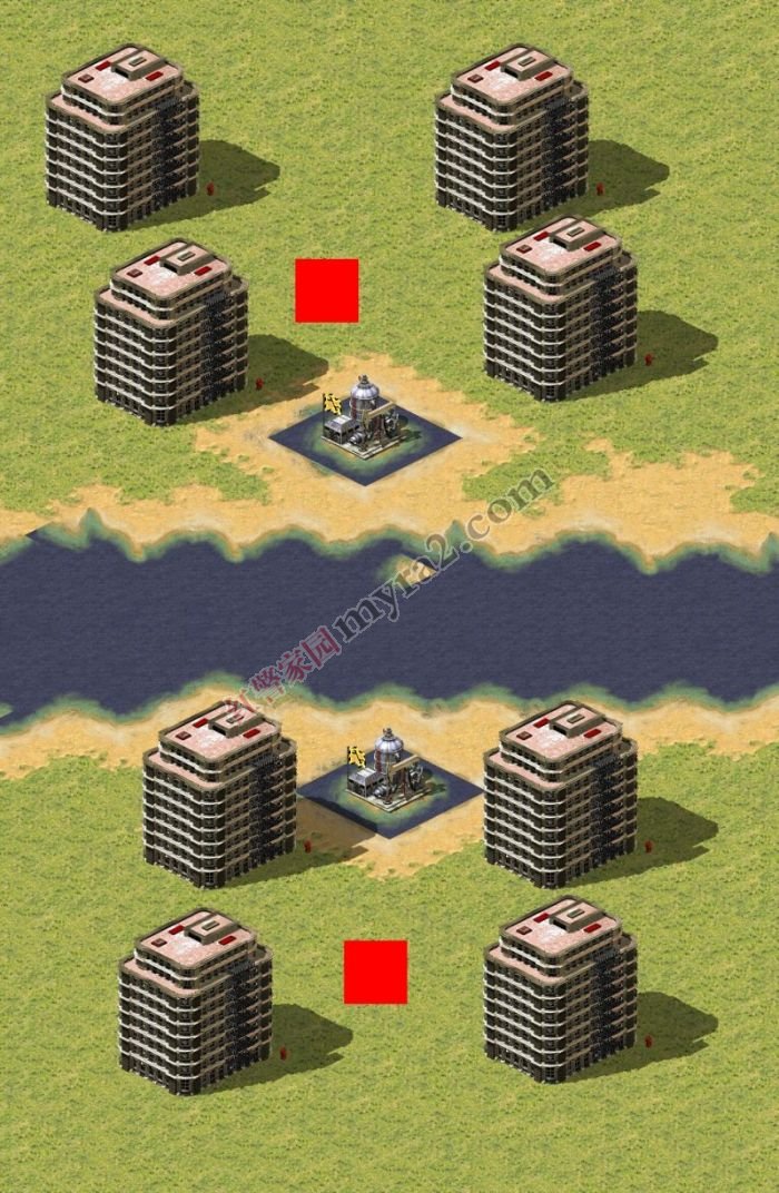 这地图推荐用利比亚并选黄色。为什么是黄色?因为有一些坑爹的地图设置了只要你是小色的话出生点就会在下面,而那些地图在下面的出生点在地图边缘……待我慢慢道来玩这图观察很重要。首先那四辆坦克分别走向四个角,编1234,然后不停地alt+1 alt+2那样子切换,看看有没箱子,同时占领房子(后线的两个房各派一个兵占,剩下的都到前线那两个里面)。做到现在以后就要看对手了,下面我先说对手是中国。中国一般想获得优势都会先出矿车来抢箱子的,但是一般不会一直待在你家里。这时派一只坦克锁定之或者干脆连理都不理自顾自地抢能拿到的箱子即可。重工出来了以后马上制造两三个恐怖机器人(取决于前期捡到钱的数量),一到两个专门捡破烂(额,就是抢箱子的意思,剩下那个看准时机在对面矿车作死时直接吃掉)。造好这些东西之后赶紧地造四五辆防空车。不要怕卡钱,毕竟有高达1/5的几率捡到钱。不造防空车的话也许对面直升机空跟飞机会干扰到你(甚至能秒杀掉你)至于重工的位置个人建议摆在前线楼房的旁边,不要太后(对面是中国的话),一般情况下就算对方用中国的V3火箭也要飞一段时间才能够到重工之后以最快的方式出复制中心。注意联军有天生的速度劣势,所以对方的中国很有可能会在复制中心造一半时投伞兵、飞机投弹,炸的就是高科。如果对方作弊偷星的话很有成功raze掉的可能,所以这时不能吝啬自己的$,使劲造防空车(20辆以下足矣)。(注意,不排除对方用海豹的可能性,所以那个早期的矿车最好拉到前线上面防守)之后要是你是作弊玩家的话做什么大家都懂的。那个没技术含量,我就不说了。然后关键的来了在确定你每个建筑(包括维修厂跟哨戒炮,但不包括核电船厂跟铁幕……超级武器可以不造)都有时再造个兵营,然后买掉基地(不卖也可以,不过你看那地方那么小,基地得多占位置啊)。之后捡到的箱子100%也是个基地,所以这时你最需要的东西是别国的科技。注意观察,要是对手已经得到了盟军的话你赶紧造多一些履带车。还要注意一点就是v3火箭,前线的东西自我感觉能偷偷干掉的一定要快点动手!(传授一个大家都懂的知识只要同时有5~8辆以上的火箭车同时对一个目标发射的话,除非是联军那个防空车,不然都守不住)之后只要看着钱超过2W然后获得一个盟军的基地,然后造一堆火箭飞行兵即可。有一些细节也能稍微利用一下,例如三星尤里。这个绝对是好东西,但是一定要避免被对方的矿车碾压。来说一下不作弊的方法吧在获得复制中心后造第二个重工,这个放在最后面,然后卖基地,要是对方没什么防空的话你就生产一个基洛夫飞艇,对面菜一点的能直接给秒了。为了获得稳定的收入在获得1W2之前捡到的基地都直接卖掉(不过也得注意对手)。然后有几种获胜的思路:一种是造个铁幕,然后用在中国的直升机上,并空运25辆天启坦克跟若干尤里(尤里塞车里再塞飞机里)到对岸,还有一种是盟军的飞行兵海,再有一种是想办法用间谍偷到高科然后用三星的超时空突击队等等隐藏兵拆拆拆。思路有很多我不列举了(其实是我想不到了)。喜欢这个地图的玩家可以在这里下载:红色警戒2共和国之辉地图没钱啊