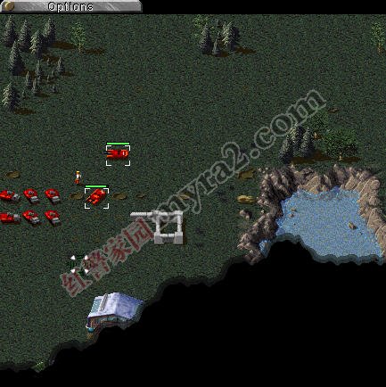 占领主建后,造高炮、兵营训练工兵占重工这样敌人的直升机全死光受伤坦克回家修理但不能碰敌人的船坞