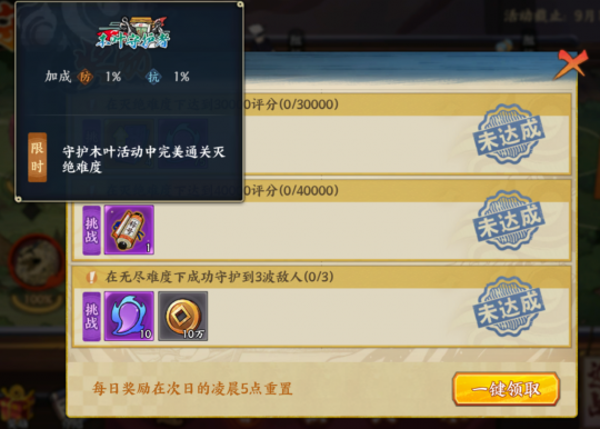 1、每个防守点可阻挡的回合数不同,一开始的防守点需要使用爆发输出能力强的忍者和阵容,以最快的效率击败敌人,若没有击败所有敌人,可让后面的防守点使用拥有养成能力的忍者和阵容;