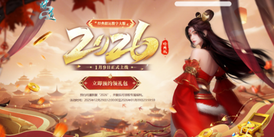 2025年12月29日12:00至2026年01月09日23:59期间,成功预约新服“2026”即可领取预约礼包,领取成功后,玩家在“2026”区组到达10级即可在天墉城南极仙翁处领取礼包。