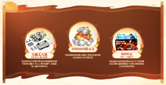 2025年12月29日 00:00 至 2026年1月12日 12:00期间,道友可以前往活动页面完成活动指定任务领取投注券,并为你心仪的赛马投注。活动结束时五匹赛马各自投注数最高的玩家可获得排名大奖——大疆DJI Neo 2 畅飞套装,此奖励每人最多可获得1份。并且活动结束时排名第1的赛马,其投注玩家按投注比例瓜分300万银元宝!