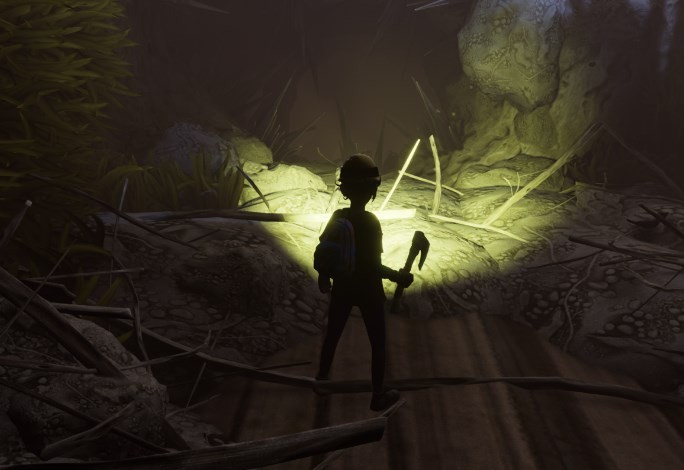 首先进白蚁洞,走到中间的大厅,往里面被木刺挡住的洞前
