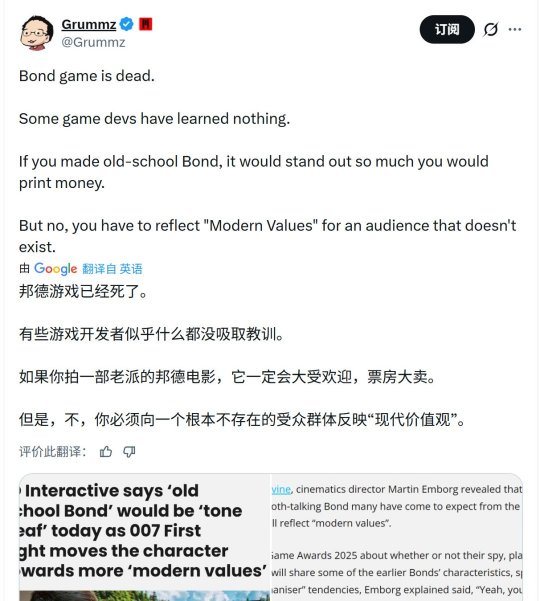 但他同时强调,邦德这个角色本身一直在变化。这个角色随着年代不断进化,而我们显然要反映当下的价值观。所以它不会是那种老派的邦德形象,那样在今天只会显得很冒犯、很不合时宜。他是一个现代的家伙。”