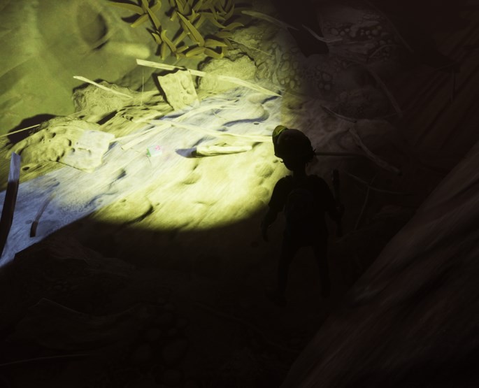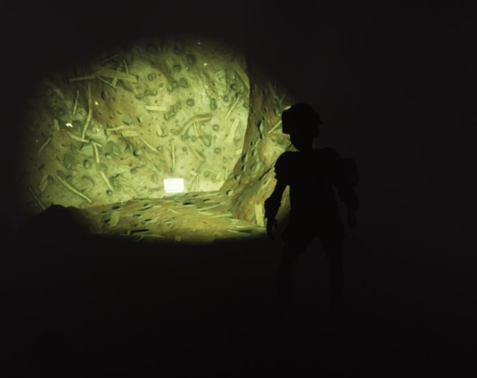首先进白蚁洞,走到中间的大厅,往里面被木刺挡住的洞前