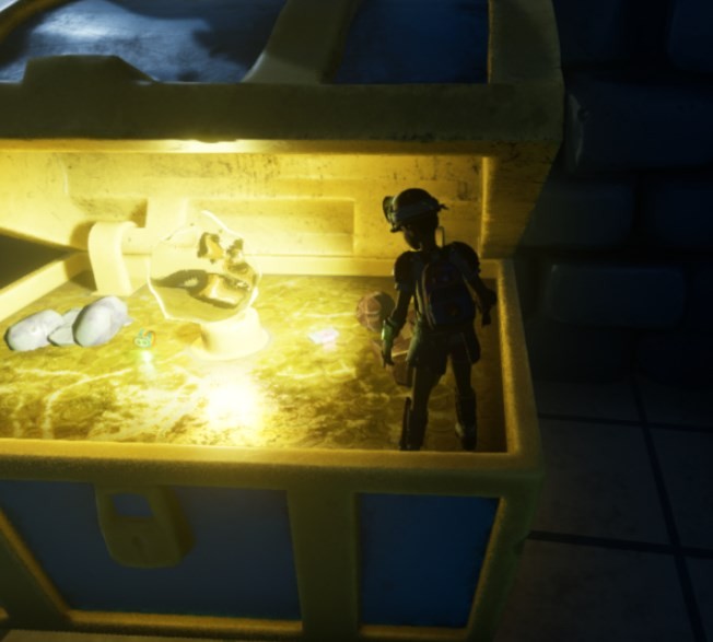 在池塘实验室附近,出水的机器下面有一个很大的箱子,里面有乳牙精华和芯片
