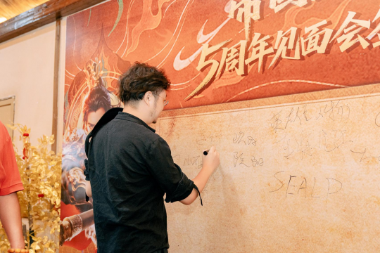 一改以往玩家见面会“台上讲、台下听”的常规套路,这次草花互动特别邀请游戏中多名高战力、高活跃的玩家代表来到活动现场,玩家们在瑶家迎宾的“拦门酒”仪式中与线上好友“面基”,在回龙山浩瀚云海中畅谈对游戏的建议和看法,在策划面对面时直言不讳进行“灵魂提问”,玩家与策划碰杯“称兄道弟”把气氛推向高潮。