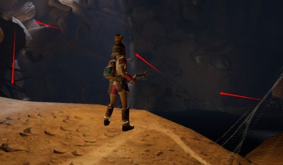 接下来有几种走法,首先是往左走,可以从正对面荡到蜘蛛洞里,但是周围有很多虎蚊,需要提前清理,不然会掉下去