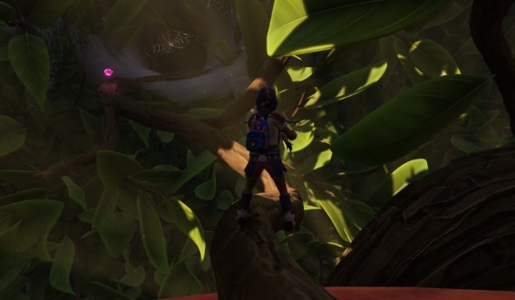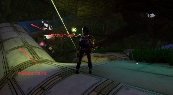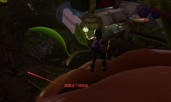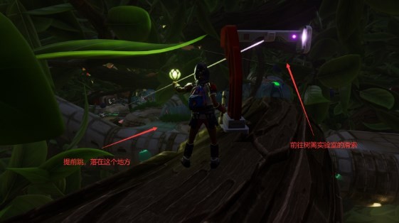 首先我们需要得到育母蜘蛛三明治的配方,先去地图右下角树篱上坡(去树篱实验室的路),一直朝树篱实验室的方向走,走到最后一个滑索,对面就是树篱实验室的时候