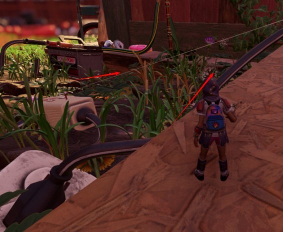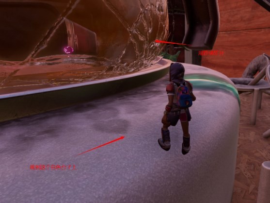 可以使用滑索上来也可以顺着电线上来,上来以后继续顺着右边的电线走到上面,再跳到这里(我是这样搞得)