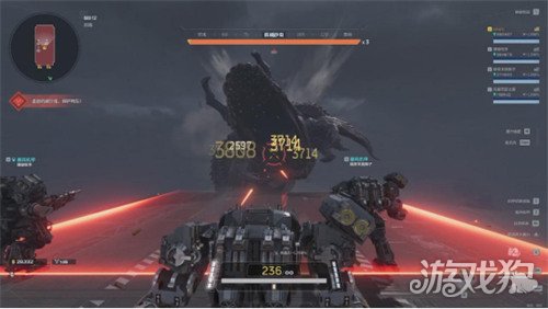 机械沙虫第一种攻击方式是开局的时候往前撕咬,会有很大的红色范围指示器提醒我们,我们离远一点即可。