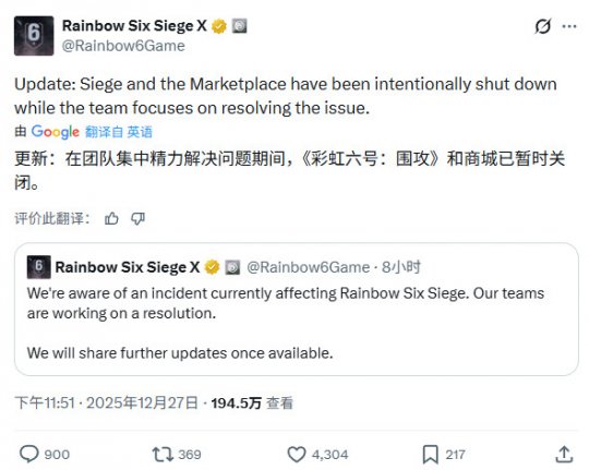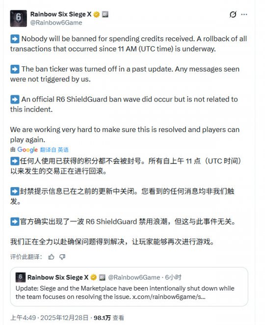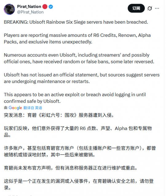 为防止问题扩大,育碧已主动关闭游戏服务器及游戏内商城,以便技术团队修复系统并完成回档操作。官方表示,当前的首要目标是确保玩家之后能够正常、安全地登录游戏。