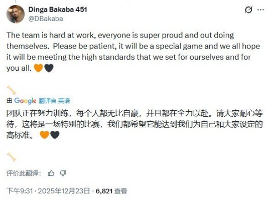 面对粉丝希望在今年圣诞节前看到游戏新情报的期待,巴卡巴回应道:团队正在全力开发,每个人都倍感自豪且超越自我。请保持耐心,这将是一款特殊的游戏,我们期待它能达到为自己和所有玩家设定的高标准。”