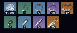 贝币×330000、破损隧体绳链×6、残旧隧体绳链×6、微损隧体绳链×10、完整隧体绳链×12、缺损聚燃体×6、余音聚燃体×8、残响聚燃体×6、回音聚燃体×20