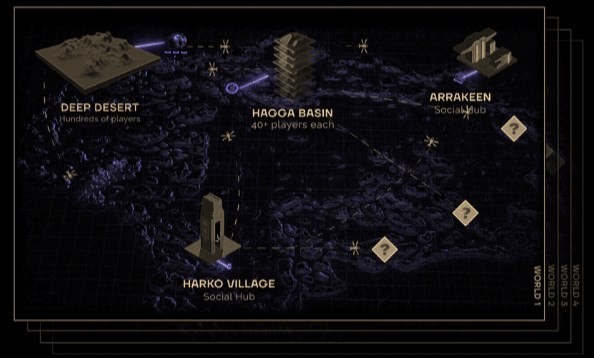 身为玩家,你可以跟同个世界其他服务器的玩家相遇互动。要了解这个系统的最佳方法,就是观察厄拉科斯的结构。