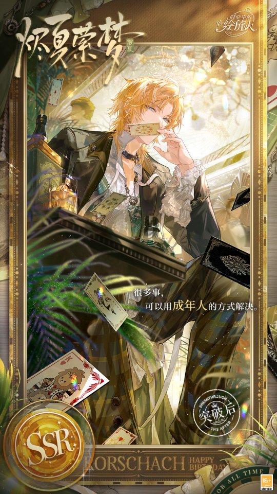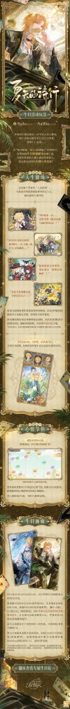 8月1日09:30 - 8月10日05:00,参与罗夏生日活动「夏天的诗行」,在生日当天与他共度,完成剧情即可免费获得1张生日纪念画灵[缀花成环]。