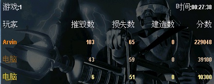 计算机核算分数依靠三个指标:摧毁数,损失数和建造数(鉴于No bases模式中无法建造,只取前两个指标合算总分)其中摧毁数和建造数是正分,损失数是负分也就是说,"杀敌一千,自损八百"的玩家的得分要比"坐拥百夫,以一当十"的玩家得分要少。No bases模式防损兵通常我有两种做法:1.在城区让步兵进驻建筑,其他部队躲在建筑后。2.设置里调慢游戏速度,这样你有更充裕的时间发挥兵种相克的战术
