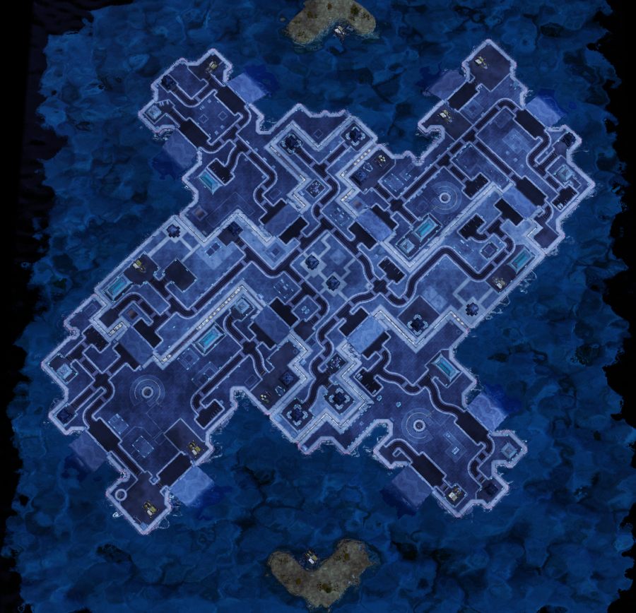 说明一下为什么要开陆地三矿。因为海矿不想被骚扰就得需要防守,用啥防守呢?只有磁爆线圈和海军。毫无疑问你没钱,所以乖乖去开陆地矿。想要详细了解这张地图的可参考:红色警戒3官方地图:战斗实验平台Battlebase Beta(http://www.hsjj5.com/glue/14042.html)