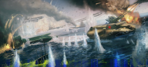 【激流ACV】盟军的运输载具,也是反步兵载具,同时还是基础制海单位,哦,听上去不错吧?不过他各方面都不够优秀,运输速度不够快,反步兵输出又太低,在海上也是弱者,只能早期用来辅助步兵,不过他的价格很实惠,只要750哦~实用性:7