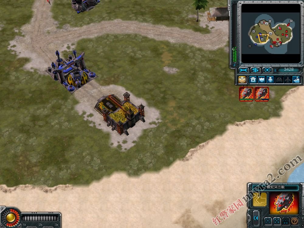 小兵进电厂增加电力,工程师开始建造,一会进入矿场,战鹰防止狗狗等攻击工程师