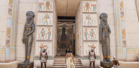 2、沉浸式古埃及氛围游戏的美术和音乐非常出色,石壁上刻着精美壁画,讲述着法老的故事,昏暗的走廊里,只有火把摇曳,影子被拉得很长,背景音乐充满神秘感,有时是悠远的笛声,有时是紧张的鼓点,让你完全沉浸在探险中,仿佛能闻到沙尘与古老香料的味道。
