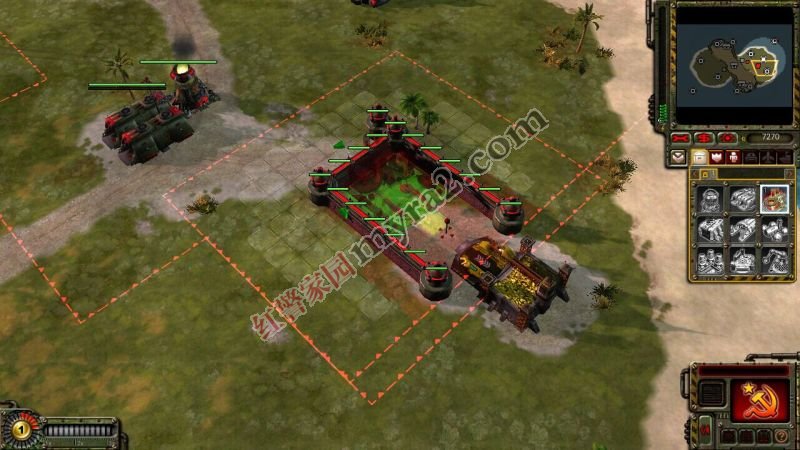 这个围法特点就是矿场后方围墙没有围满,有一边的围墙超出一截。这样围相比直接围满好处在于,矿车从矿场穿矿出来更方便(不用卖矿墙)。相比下面这种貌似也比较常见的两边各围一半的围法: