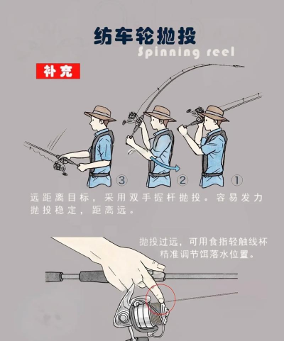 3、掌握落点与收线技巧抛出去后,要注意落点,尽量让鱼饵落到目标区域,然后,轻轻收紧鱼线,保持线组绷直,接着,可以轻微抖动竿尖,让鱼饵活动起来,吸引鱼儿注意,如果有鱼咬钩,你会感到竿尖抖动,或者鱼线被拉动。