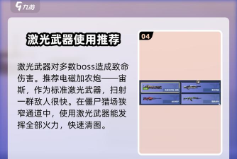 玩家想要快速的提升战斗力,这时候也可以直接去军备商城进行购买,因为商城会定期上架一些进阶的激光武器,这些武器不仅仅要比基础的激光武器伤害性更高,而且它们还会缩短技能冷却时间,可以有效地提升充能效率等等,就比如搭载了极光飞流技能的纪元之光,它其实在商城当中属于热门款,也能够在僵尸猎场当中帮助玩家顺利的通关。