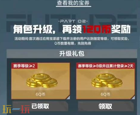 1、应用宝下载并注册,付0.01元秒得6q币,赛季等级达到2级再领6q币,升到8级再拿6q币,应用宝通行证共返8q币,合计26q币。