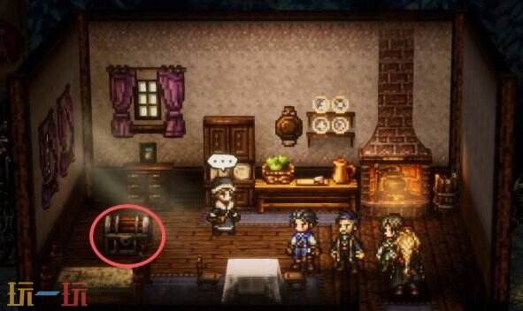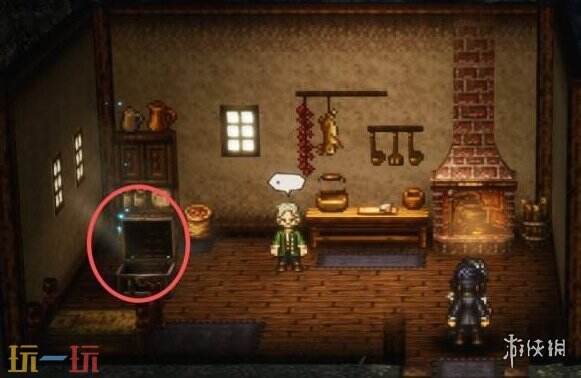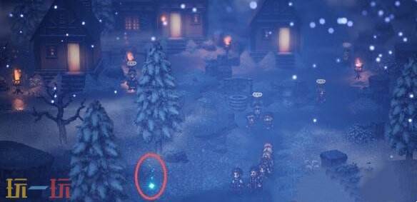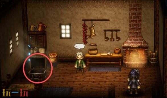 《歧路旅人 0》恩波格洛及东街:旅店二楼、右侧民宅各有宝箱,民宅宝箱出增强 SP 的坚果,打听 NPC 可得木材、恩波格洛菜食谱;东街民宅宝箱出恢复 HP 的葡萄,打听得绘画,买雪人解锁地图下方区域可得增强速度的坚果。