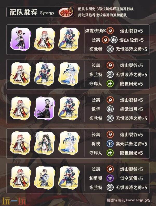 长离定位热熔迅刀副C,高链可做主C,主要伤害类型为共鸣技能伤害,延奏技能为下一位队友提供共鸣解放增伤和热熔增伤,因此需要一位未来共鸣解放出伤的热熔大C。当前版本可考虑使用炽霞和安可代替,与长离进行轮切输出。布兰特的到来也可以提升长离的输出能力,可考虑长离布兰特组队,布兰特刚需专武,长离可不用专武。折枝可以替代布兰特做副C辅助长离。除此之外,长离可以放在任何可以打合轴的队伍中快速轮切,比如今汐或相里要。