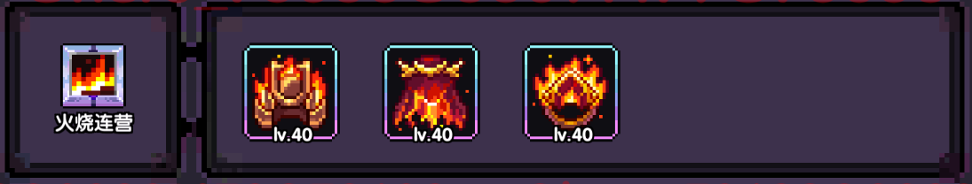 火烧连营:使用木属性技能时获得【营】;使用火属性技能时消耗【营】并获得【营火】。