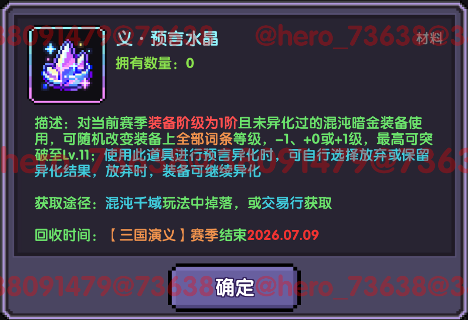 若选择消耗【义·预言水晶】则能选择是否需要保留异化结果。