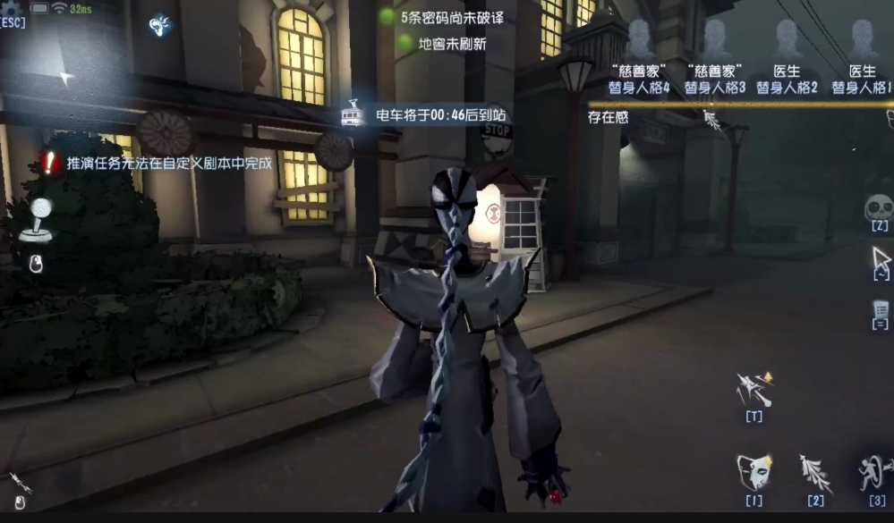永眠镇地图存在特殊场景组件电车,电车会环绕商业区运行,一共有四个停靠点,分别是学校、墓地、车站以及湖心亭,开局电车的停靠点是学校,大概在开局后四秒多时发车,从学校到湖心亭耗时为十一秒左右,从湖心亭到墓地耗时接近十二秒,墓地从车站耗时为十五秒多,车站到学校为九秒。电车每次到站的停靠时间为十秒,双刀都可以站在电车前后门处点击交互键上车,求生者固定坐在电车前排,而且上车后不能主动下车,监管者固定坐在后排,可以在电车启动之前下车。