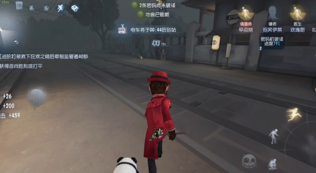 电车到站后将强制乘客下车,求生者固定从前门下车,监管则固定从后门下车,双方下车后三十秒内无法再次乘车。如果角色被经过的电车撞到会进入两秒的僵直和后续五秒的眩晕硬直,监管者的兴奋技能只能免疫眩晕,无法免疫撞飞,只有处于绝对霸体状态的角色才不会受到电车的控制效果。电车的撞击判定位于车头,运行的电车依然具备实体可以挡路,电车会在求生者剩余投降时间两百多秒时抵达湖心亭,快两百秒时抵达墓地,一百七十多秒时到达车站。