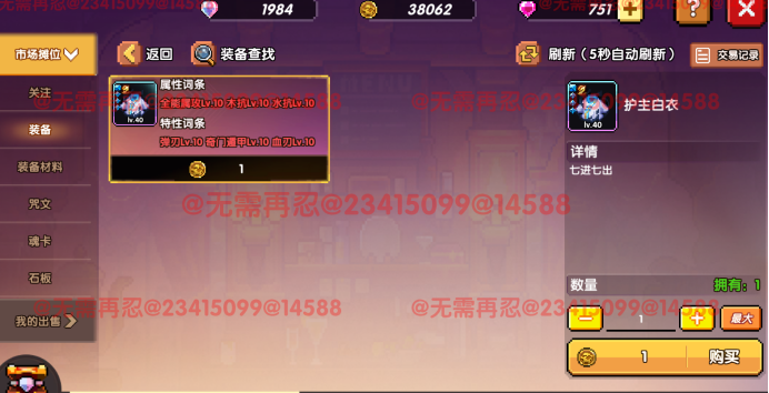 假设我现在想买一件忍者的职业暗金装备,护主白衣,且要词条全是LV10的。