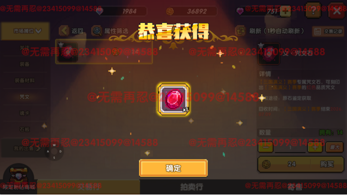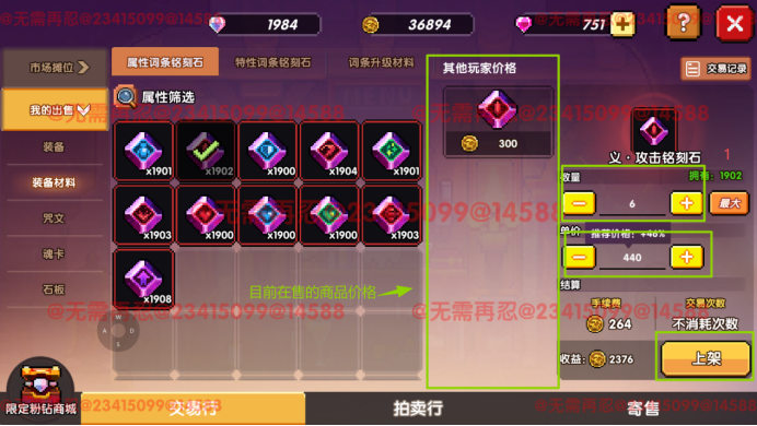 装备、咒文石、成品魂卡为唯一类型道具,唯一类型进行穿戴、养成后依旧可以进行上架;