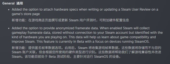 除了评论显示硬件规格外,本次更新还加入匿名化帧率信息选项,启用后Steam会在游戏过程收集帧率数据,但不会与个人Steam帐号绑定,而是与使用中的硬件类型关联。Valve表示,这些数据将用于分析游戏兼容性与效能表现,协助改进平台体验,该功能仍在Beta阶段。