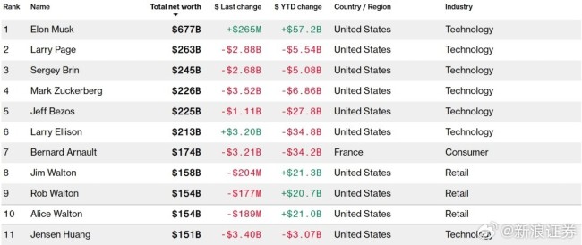 其中,财富缩水最严重的当属甲骨文董事长Larry Ellison,他今年的财富已经下降348亿美元至2130亿美元,距离巅峰时期更是下降超过45%。