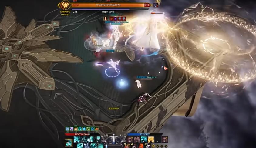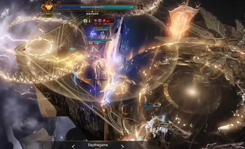 过程中会随机点名玩家四次,角色的头顶上会出现一个红色的瞄准镜,到达指定时间后玩家需要躲避下落的导弹,如果被命中的话会受到大量的伤害,也有坠落的风险。被电圈命中的玩家会被麻痹三秒,可以用净化消除,玩家的空格也是可以免疫电圈的。boss会手持巨剑长时间蓄力,随后会随机出现在一位玩家身前劈出,大家可以在boss出现的瞬间用空格来躲避。
