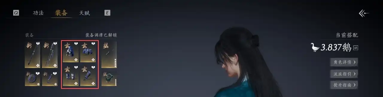 此外,我们在装备选择上还可以看到如“断”“御”等字眼,这个实际上指的是装备的套装,当满足套装条件时(比如左边四件装备都为断岳套),那么就会满足对应的套装加成,这里简单放一下每个流派对应的装备套装,可以作为参考: