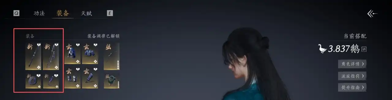 如下图所示,燕云的装备可以分为左边四件和右边四件,左边四件分别是主武器、副武器、环和佩